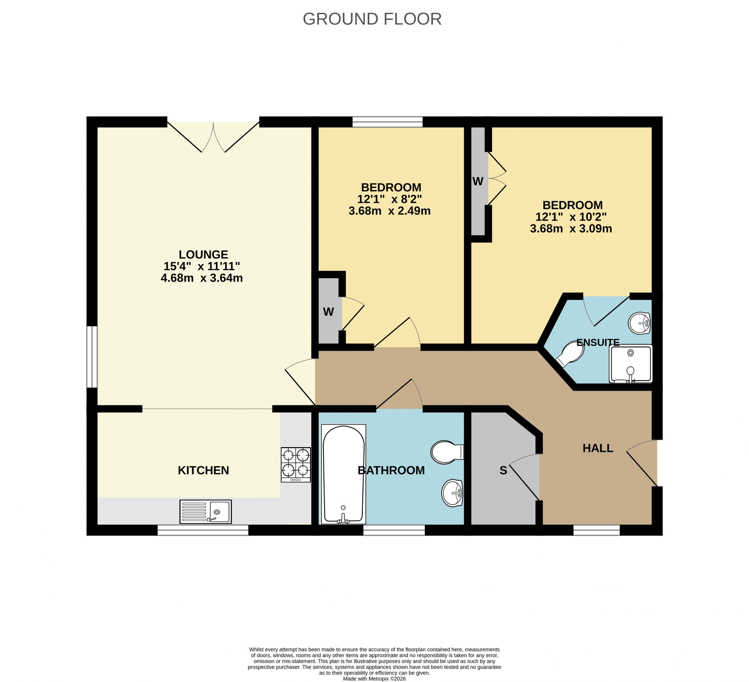 The accommodation comprises an entrance hall, a bright and airy lounge, kitchen, two bedrooms, with the principal bedroom benefiting from an en-suite, along with a main bathroom.