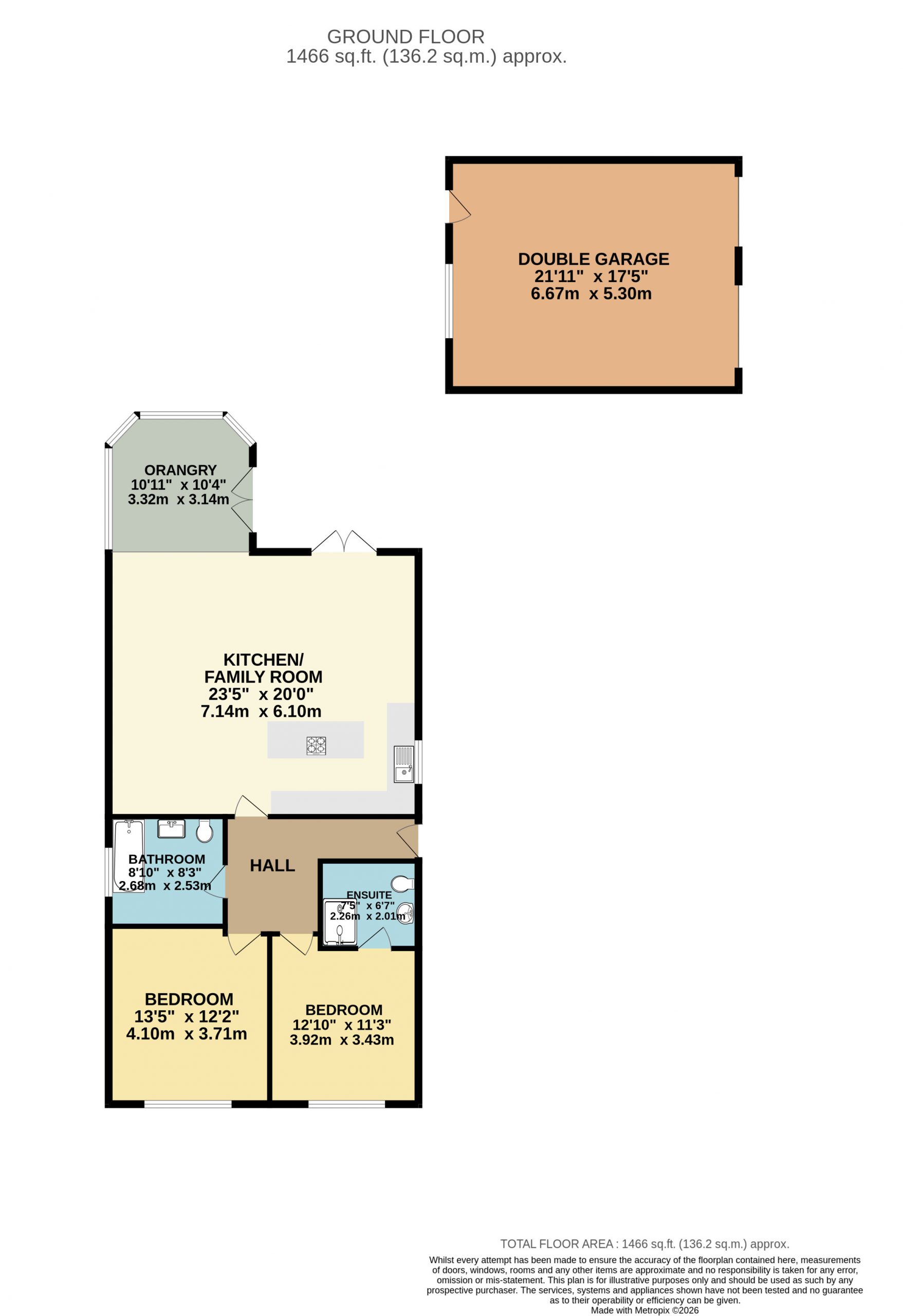 Externally, the property enjoys well-proportioned front and rear gardens, along with a detached double garage and driveway providing off road parking for two vehicles.